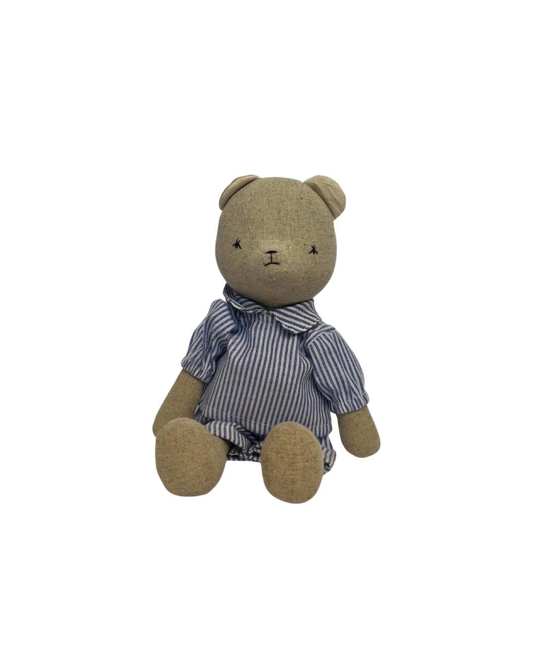 Questa bambola fatta a mano è realizzata in tela di cotone biologico effetto lino e imbottita con fibre ipoallergeniche.