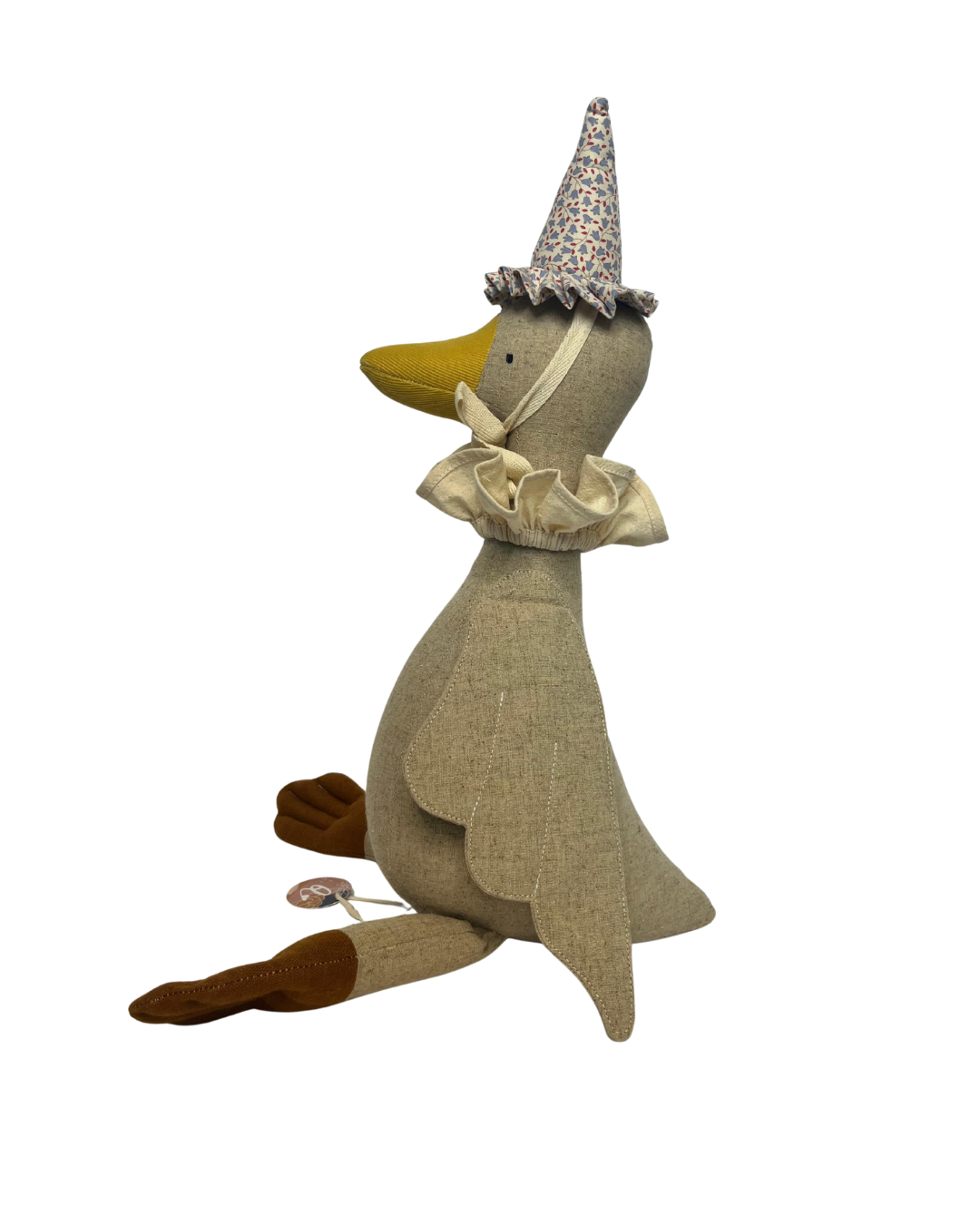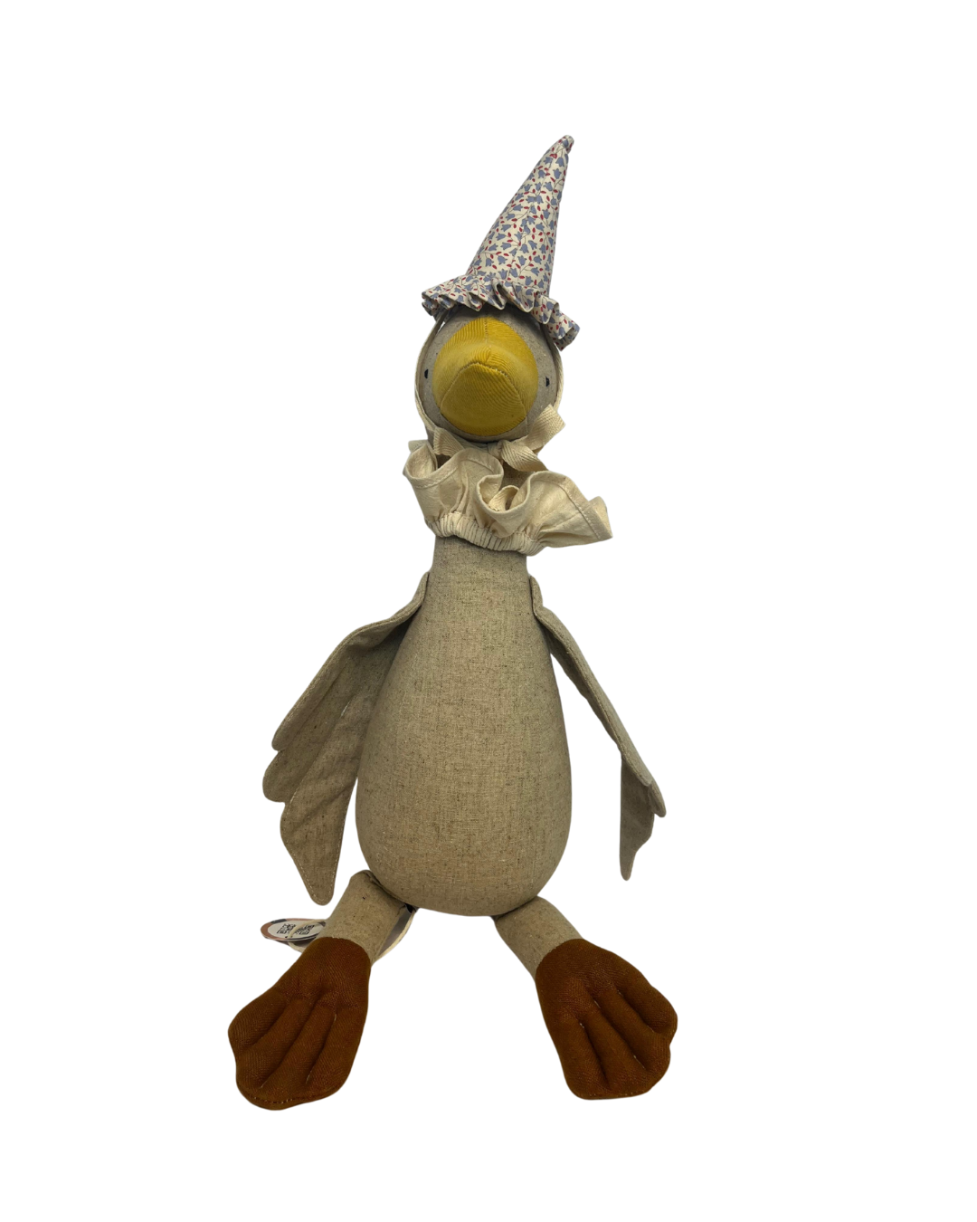 Questa graziosa oca presenta un allegro cappello a pois beige e un delicato fiocco che aggiunge carattere e fascino a qualsiasi spazio. Perfetta per la cameretta dei bambini, la sala giochi o come regalo unico. Che sia appoggiata su una mensola o coinvolta in giochi di fantasia, questa oca porterà sicuramente gioia e sorriso ovunque vada.