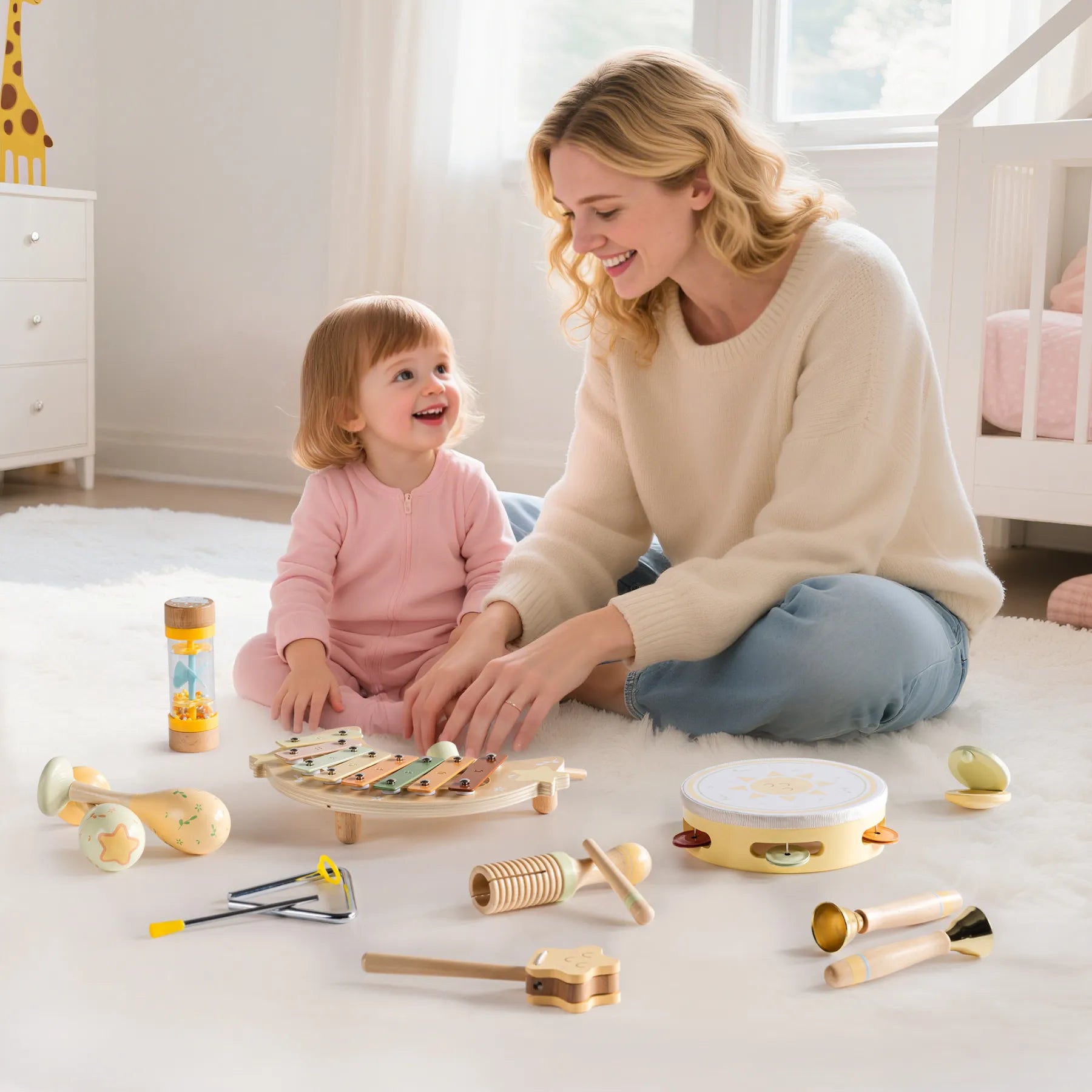 - 🥁 Sicuro, Liscio & Adatto ai Bambini – Ogni strumento è realizzato in legno massello naturale con bordi arrotondati e vernice non tossica, ecologica – sicuro per neonati e bambini piccoli.