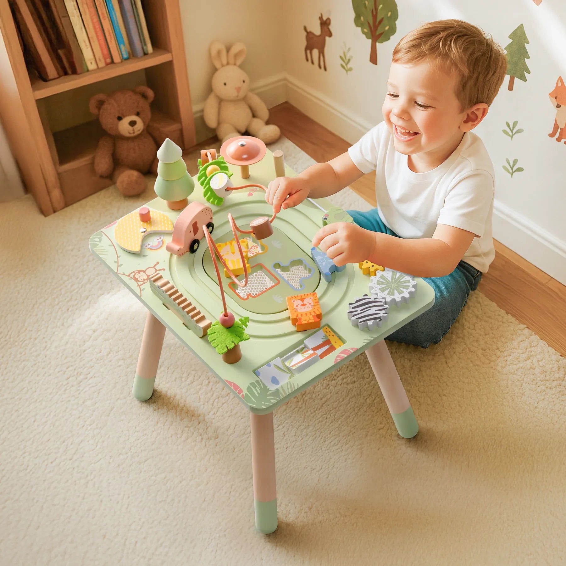 Supporta il Gioco Indipendente: Questo tavolo attività in legno incoraggia l'esplorazione e il gioco indipendenti. Fornendo attività stimolanti al ritmo del bambino, favorisce l'indipendenza, costruisce fiducia e promuove la risoluzione dei problemi e l'apprendimento autodiretto.
