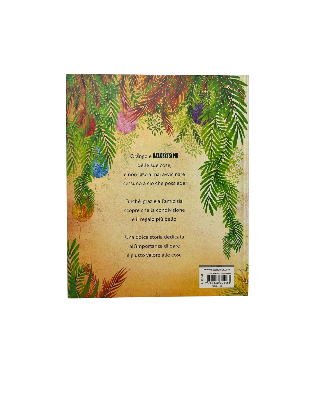 Orango è gelosissimo delle sue cose, e non lascia mai avvicinare nessuno a ciò che possiede. Finché, grazie all’amicizia, scopre che la condivisione è il regalo più bello.